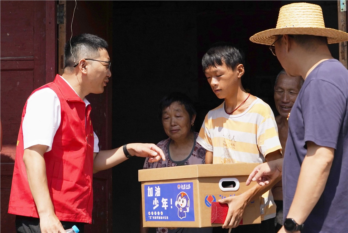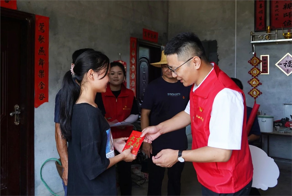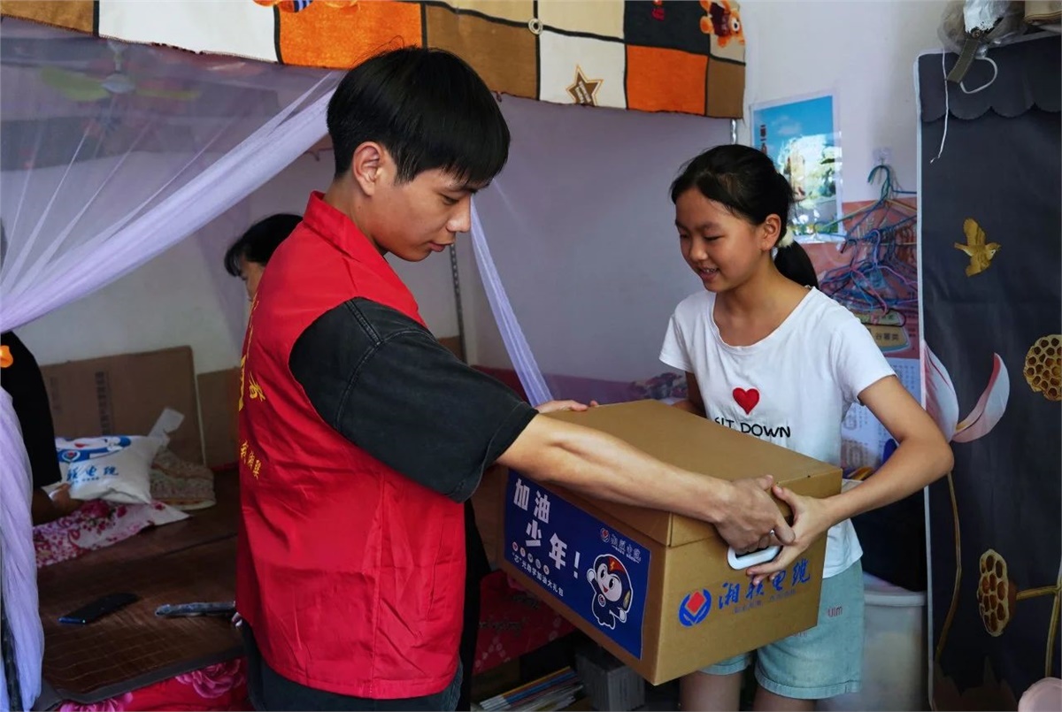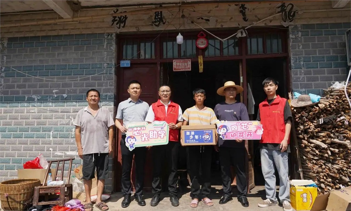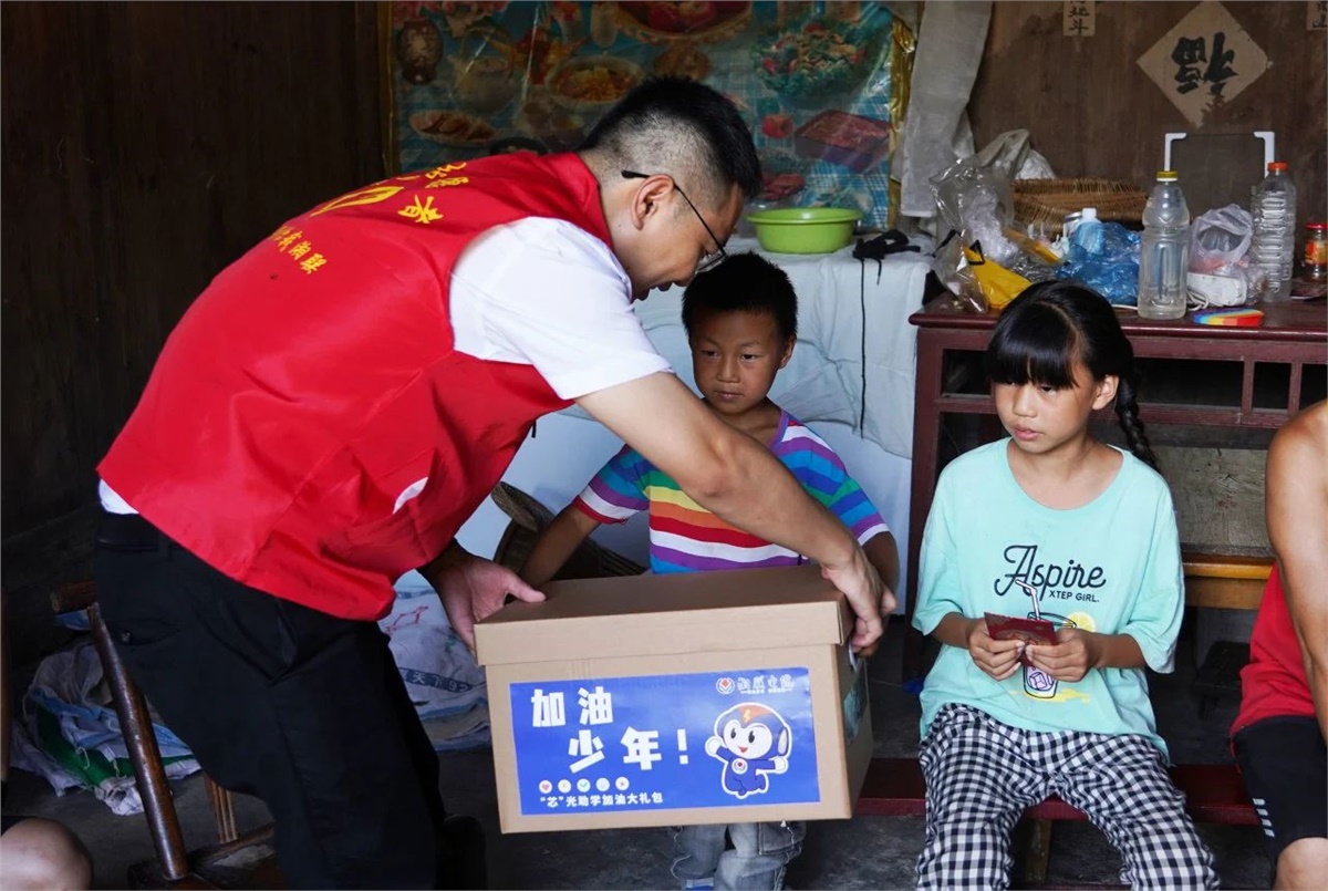 8月23日,在當地領導干部的陪同與幫助下,湘聯電纜“芯”光助學基金會的志愿者們對苗兒灘鎮的6個村,8個家庭進行了實地走訪,并將“芯”光助學基金和加油大禮盒送到了孩子們手中。