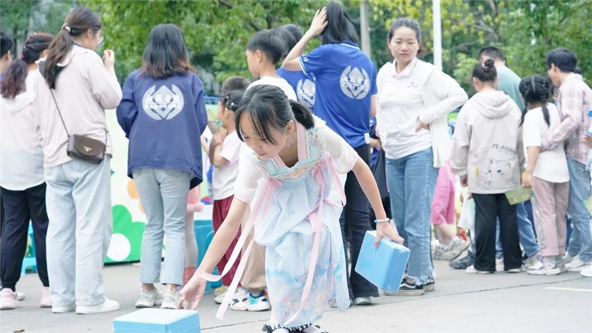 運動會后,小朋友們在“湘聯寶貝歡樂集市”領取了零食禮包和科普實驗套裝,孩子們捧著禮物,臉上洋溢著滿足與幸福。